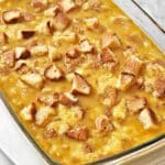 - Soak Bread: Pour this custard mixture evenly over the bread and raisins in the baking dish. Let it sit for 10 minutes, allowing the bread to soak up the custard.