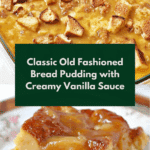 This classic Old Fashioned Bread Pudding with Vanilla Sauce is a warm, comforting dessert featuring soft cubes of white bread soaked in a rich custard infused with cinnamon and nutmeg, studded with sweet raisins, and baked to golden perfection. Served with a luscious homemade vanilla sauce, this timeless treat is perfect for cozy gatherings or a delightful end to any meal.