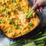 Keywords: buffalo chicken dip, baked chicken dip, buffalo dip, game day dip, cheesy chicken dip, spicy appetizer