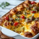 This Overnight Croissant Breakfast Casserole is a delicious and hearty morning meal featuring buttery croissants, savory breakfast sausage, and melted cheddar cheese soaked in a flavorful custard. Prepared the night before and baked in the morning, this casserole is perfect for busy mornings or brunch gatherings, offering a comforting blend of textures and tastes.