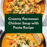 This hearty Parmesan Soup combines tender chicken, savory tomatoes, and melted cheeses for a comforting and cheesy bowl of warmth. Perfect for chilly days, it features slow-cooked chicken and rich flavors, complemented by tender pasta and a creamy finish.