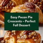 These Pecan Pie Crescents are a delightful twist on traditional pecan pie, featuring buttery crescent roll dough filled with a sweet, nutty pecan mixture. Easy to prepare and perfect for any occasion, these golden crescents offer a delicious combination of rich brown sugar, corn syrup, and pecans with a hint of cinnamon.