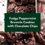 Keywords: peppermint brownie cookies, chocolate peppermint cookies, holiday cookies, fudgy brownie cookies, peppermint candy bake, chocolate chip cookies