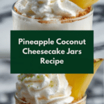 These Pineapple Coconut Cheesecake Jars are a refreshing no-bake dessert perfect for parties or a sweet treat. Featuring a graham cracker crust, a luscious coconut-infused cheesecake layer, and a tangy pineapple topping, each jar offers a delightful balance of creamy, crunchy, and fruity flavors. Easy to assemble and beautifully layered, they make an impressive and convenient dessert option.
