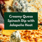 Keywords: queso dip, spinach dip, baked dip, Tex-Mex appetizer, party dip, cheesy dip
