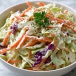 This crunchy coleslaw pairs wonderfully with grilled meats, sandwiches, burgers, or as a refreshing side to any picnic or barbecue meal.