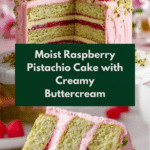 A delightful Raspberry Pistachio Cake featuring a moist pistachio-flavored sponge layered with tangy raspberry jam and a smooth, vibrant raspberry buttercream frosting. This cake balances nutty richness with fruity freshness, perfect for special occasions or an elegant dessert.