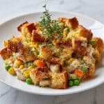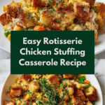 This Rotisserie Chicken Stuffing Casserole is a comforting, easy-to-make dish combining tender shredded rotisserie chicken with flavorful stuffing, creamy soup, mixed vegetables, and savory herbs. Baked to golden perfection, it’s a perfect hearty meal for family dinners or potlucks.