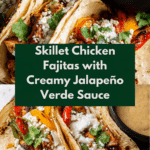 Keywords: Skillet Chicken Fajitas, Jalapeño Verde Sauce, Mexican Fajitas, Creamy Fajita Sauce, Chicken and Peppers, Easy Fajitas Recipe