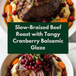 Keywords: Slow braised beef roast, cranberry balsamic glaze, beef chuck roast recipe, oven-braised beef, fall dinner recipes