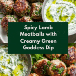 Experience the bold flavors of Middle Eastern-inspired Spicy Lamb Meatballs served with a creamy, herbaceous Green Goddess Dip made from avocado, Greek yogurt, and fresh herbs. These tender meatballs are perfectly pan-seared to a golden crust and paired with a cooling, zesty dip that balances the heat and spices beautifully.