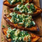 - Serve with Herb Drizzle: Remove the stuffed sweet potatoes from the oven and drizzle generously with the prepared herb sauce before serving.