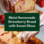 Store the strawberry bread in an airtight container in the refrigerator for up to 3 days. Reheat slices gently in the microwave for a few seconds or enjoy chilled. The glaze is best enjoyed fresh, but the bread remains moist and flavorful even after refrigeration.