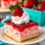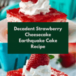 This Strawberry Cheesecake Cake, also known as Earthquake Cake, is a delightful dessert featuring a moist strawberry cake base mixed with luscious cream cheese swirls, white chocolate chips, and fresh strawberries. Topped with whipped cream and extra strawberries, this cake offers a perfect blend of fruity sweetness and creamy richness, making it an irresistible treat for any occasion.