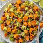 Keywords: Black bean salad, roasted sweet potatoes, cilantro lime dressing, healthy salad, vegetarian salad