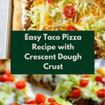 Keywords: Taco Pizza, Crescent Dough Pizza, Tex-Mex Pizza, Cream Cheese Pizza, Ground Beef Pizza, Easy Dinner Recipe, Party Pizza, Homemade Pizza