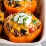 Keywords: Stuffed Peppers, Taco Stuffed Peppers, Ground Beef, Mexican, Healthy Dinner, Baked Peppers, Easy Dinners