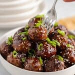 - Garnish and Serve: Once cooked through, garnish the teriyaki meatballs with thinly sliced green onions and toasted sesame seeds. Serve hot and enjoy!