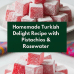 This authentic Turkish Delight recipe creates a soft, chewy candy infused with rosewater, raspberry, and orange extracts, offering a delightful balance of floral and citrus flavors. Enriched with optional pistachios for a nutty crunch, this homemade treat is perfect for gifting or enjoying with tea.