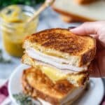 Keywords: Turkey sandwich, Dijon mustard sandwich, melted cheese sandwich, easy lunch recipe, skillet sandwich, toasted sandwich
