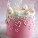 This Valentine’s Raspberry Cake is a beautiful and delicious dessert perfect for celebrating love. Layers of moist cake are paired with a delicate white chocolate buttercream and a light Italian buttercream gradient, all topped with charming raspberry hearts for a stunning finish.