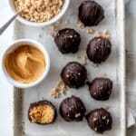 - Freeze Balls: Put the tray in the freezer for about 15 minutes, or until the peanut butter balls harden and are firm to the touch.