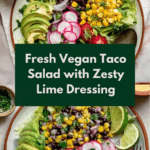 This vibrant vegan taco salad is a fresh and flavorful dish that combines crisp lettuce, zesty lime, and a colorful mix of vegetables and beans. It’s perfect for a quick lunch or a light dinner, with a delicious dressing to bring everything together.
