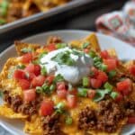 - Top and Serve: Once baked, remove from the oven and top with the remaining crushed chips. Add any desired toppings such as sour cream, shredded lettuce, diced tomatoes, and chopped green onions or cilantro to enhance the flavor and texture.
