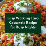 Keywords: Walking Taco Casserole, taco casserole, ground beef casserole, easy Mexican casserole, baked taco dish, quick family dinner